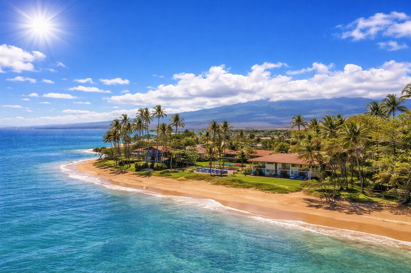 South Maui is famous for its beautiful golden sand beaches and calm ocean waters, making it perfect for swimming, snorkelling, and relaxing in the sun.