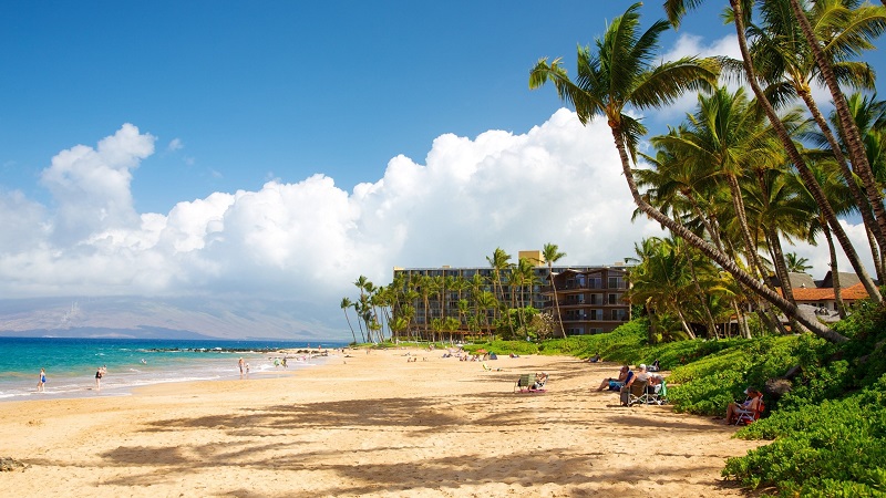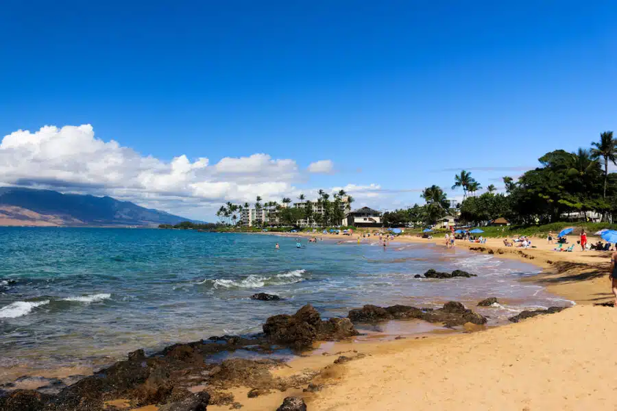 South Maui is famous for its beautiful golden sand beaches and calm ocean waters, making it perfect for swimming, snorkelling, and relaxing in the sun.